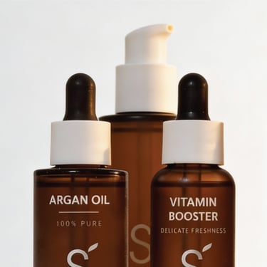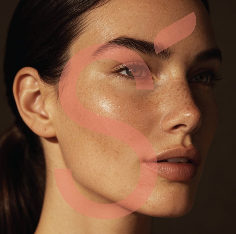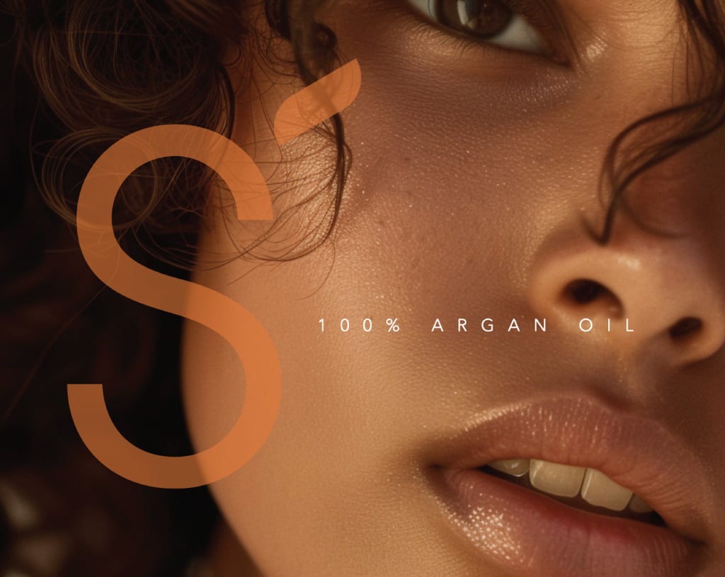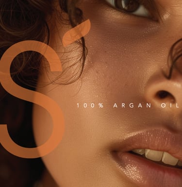 La identidad visual combina sofisticación y organicidad: tipografías elegantes, fotografías de alta sensibilidad y una paleta de colores tierra como base, enriquecida con matices marroquíes que aportan vida, calidez y carácter. El isologo refuerza lo natural y lo esencial, mientras que los encuadres fotográficos cerrados destacan primeros planos de la piel, transmitiendo intimidad, pureza y eficacia real.