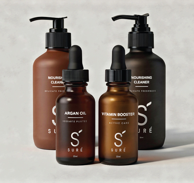 Los envases de Suré responden a un diseño clásico de líneas limpias, suaves y atemporales, pensados para perdurar y comunicar pureza.